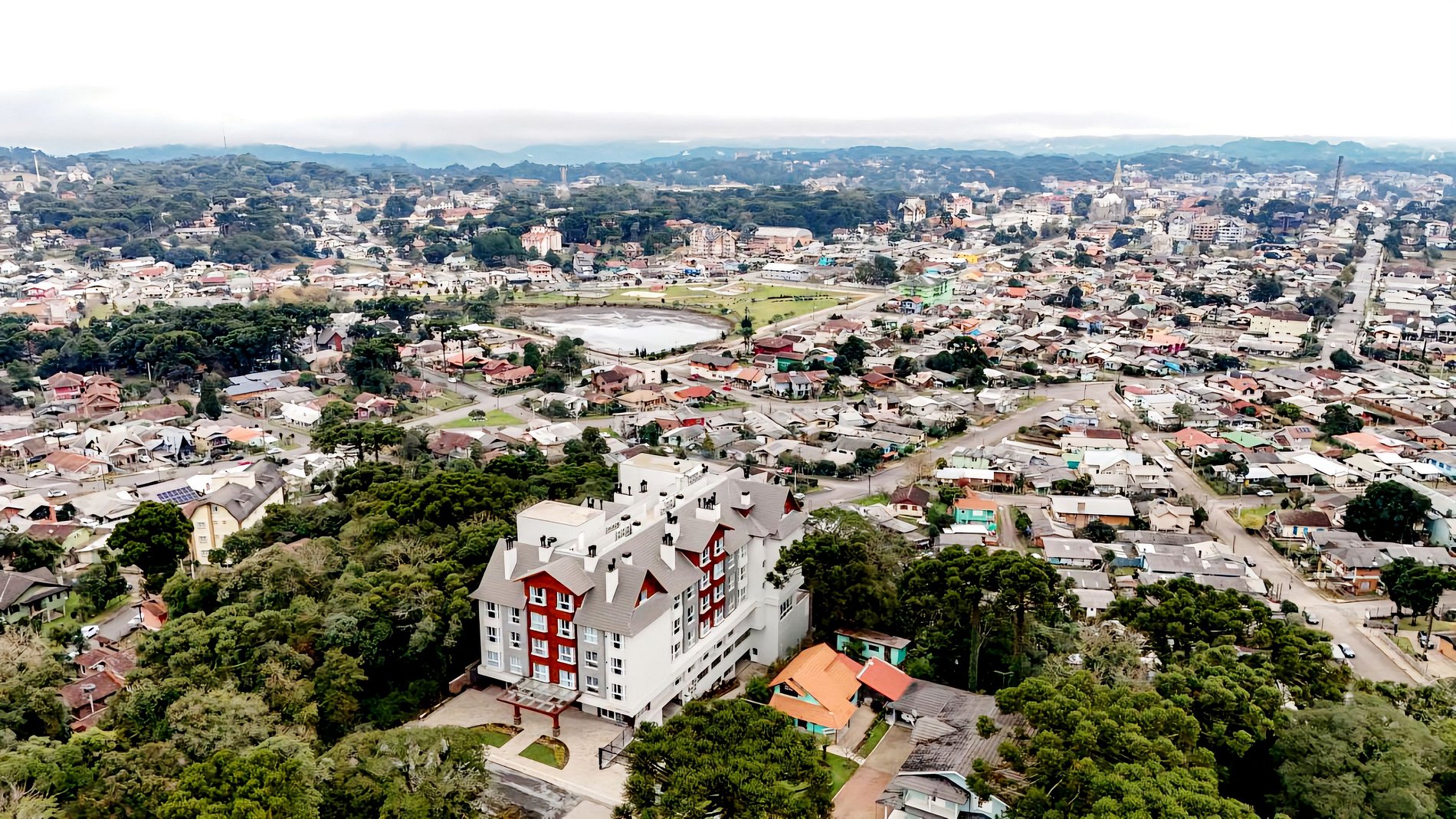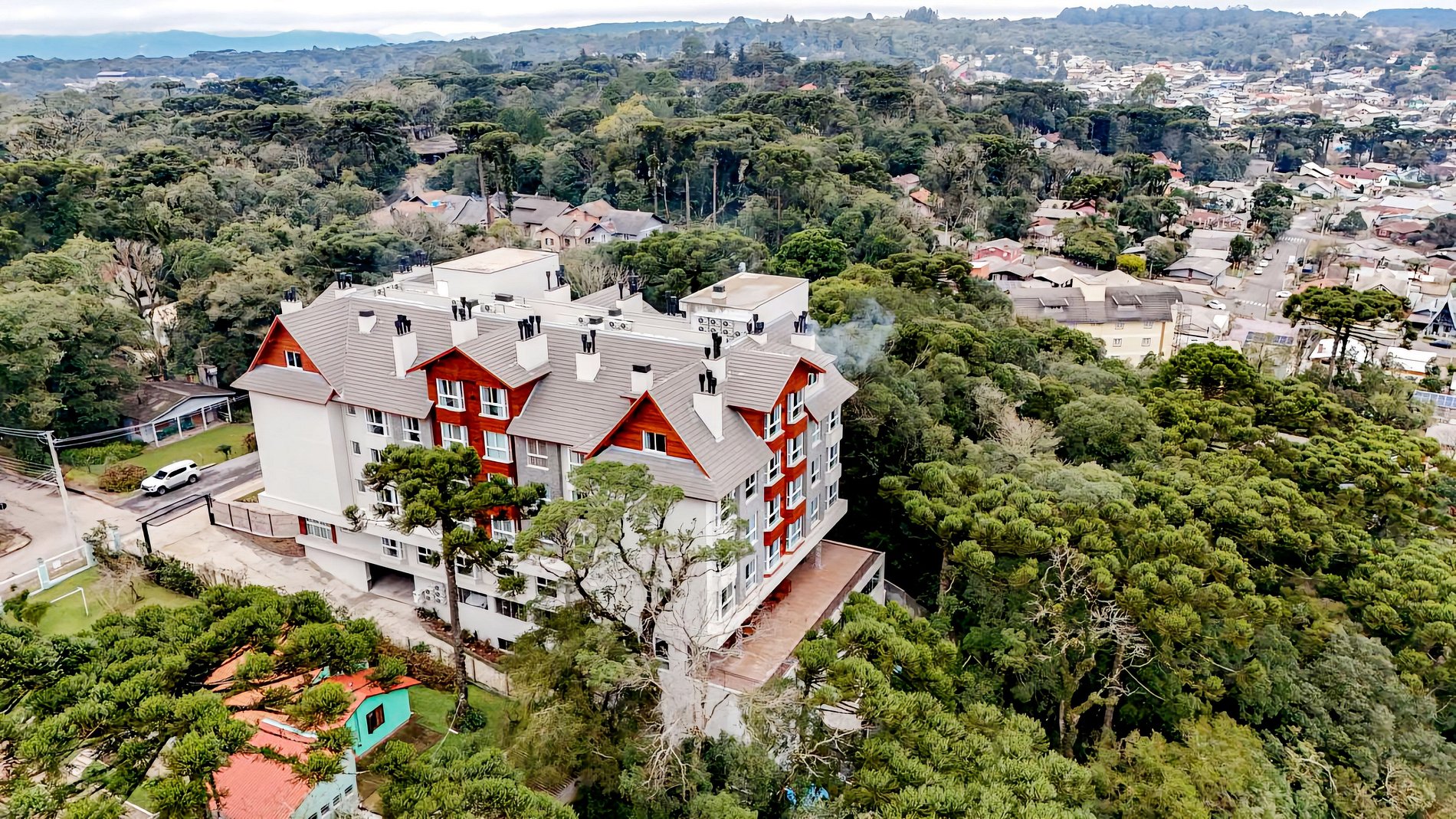 Espetacular Flat para até 4 pessoas em Canela, na Serra Gaúcha, para locacao/aluguel por temporada. Sala com lareira, cozinha equipada e lareira, todo mobiliado em alto padrão. Moderno, c/ todos os recursos disponíveis para uma estadia memorável. . Tem no empreendimento piscina aquecida, sauna, academia, espaço kids, solarium com a mais linda vista da cidade de Canela e Catedral de Pedra, e uma aconchegante sala com lareira. Localizado em área nobre, rodeado de muito verde e linda vegetação.