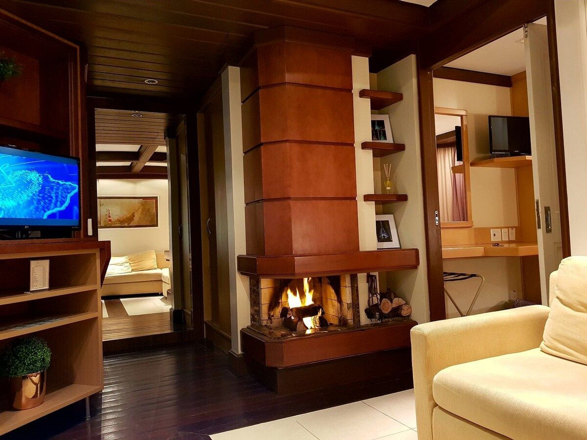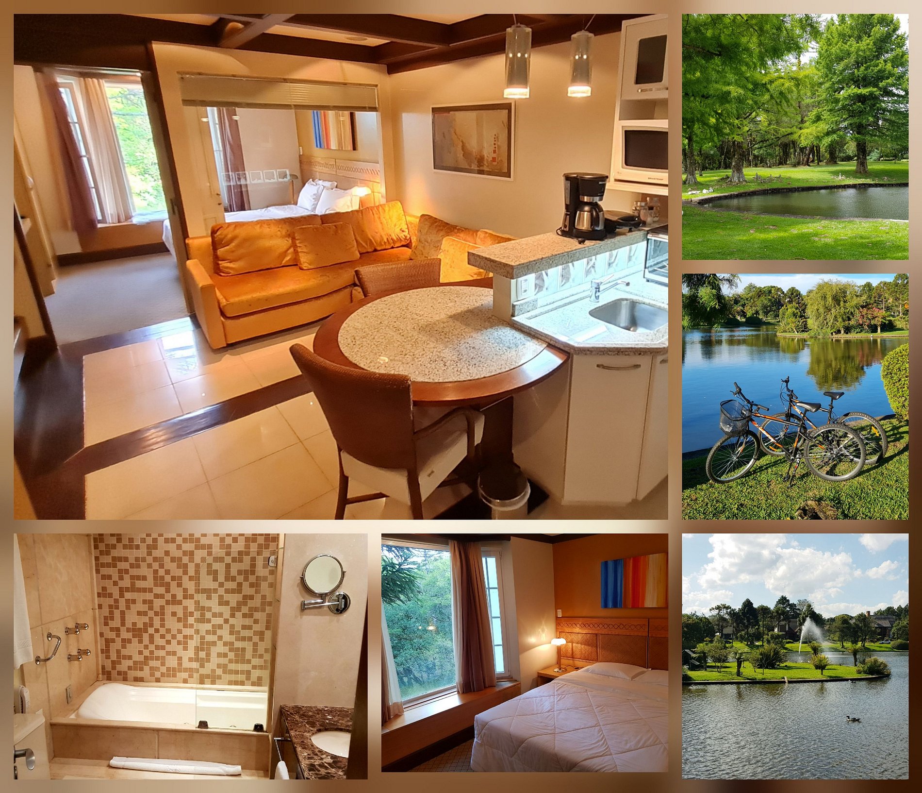 Aconchegante e Luxuoso Apto Studio, c/ quarto p/ casal, sala e cozinha, todo mobiliado em alto padrão. Comporta até 4 pessoas, moderno, c/ todos recursos disponíveis p/ tornar sua estadia memorável, junto às lindas vistas da Serra Gaúcha, c/ muito verde, opções de lazer e conforto. Possui banheira com HIDROMASSAGEM, iluminação ambiente, geladeira, cafeteira, lava louça, microondas, forno elétrico e demais itens necessários para o espaço goumet.