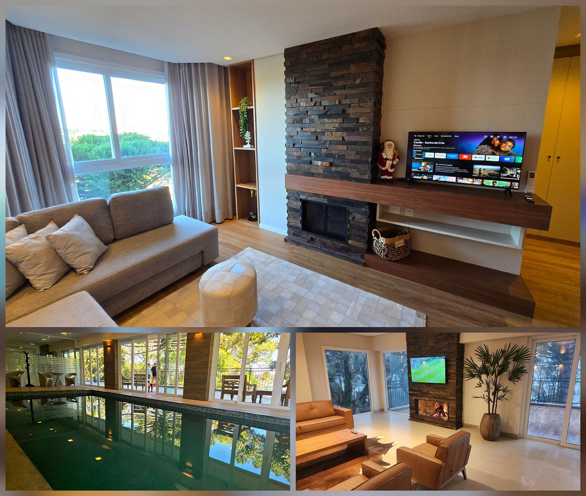 Excelente localização, confortável, novo, com uma área social que possui piscina aquecida, um espaço kid para seu filho poder gastar suas energias e brincar muito na piscina de bolina ou pula pula, com uma academia com os melhores aparelhos para musculação, bike e esteira, com uma sauna para poder relaxar, e um solarium com a melhor vista de Canela, contemplando a linda Catedral de Pedra. Há poucos minutos do centro de Canela a pé. O Flat possui lareira, ar condicionado móveis modernos e decorados com o maior carinho, para que tenham dias memoráveis.