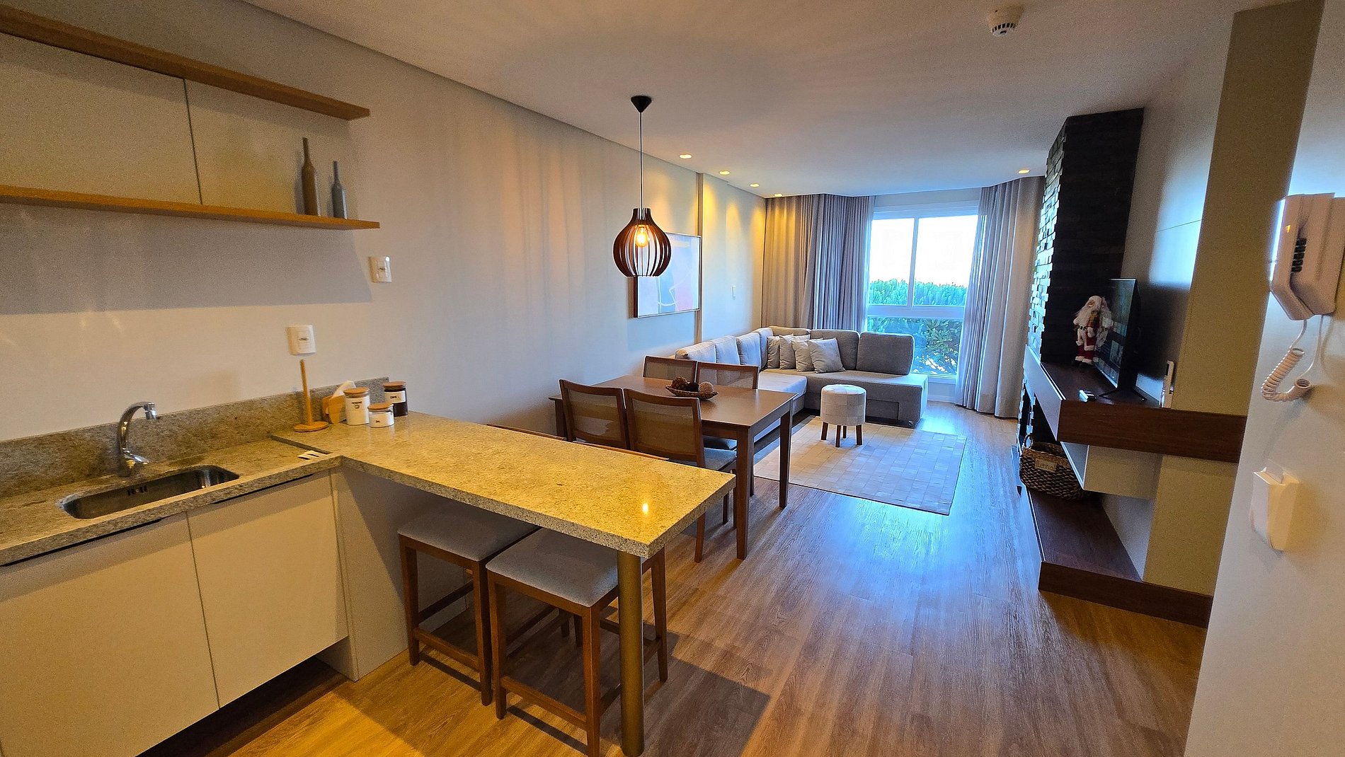 Divirta-se com toda a família neste lugar cheio de estilo. Espetacular Flat para até 5 pessoas, sala 2 ambientes, cozinha equipada e lareira, todo mobiliado em alto padrão. Moderno, com todos os recursos disponíveis para uma estadia memorável. Possui a mais linda vista da cidade de Canela e Catedral de Pedra. Possui no empreendimento piscina aquecida, sauna, academia, espaço kids, solarium e uma aconchegante sala com lareira. Localizado em área nobre, rodeado de muito verde e linda vegetação.