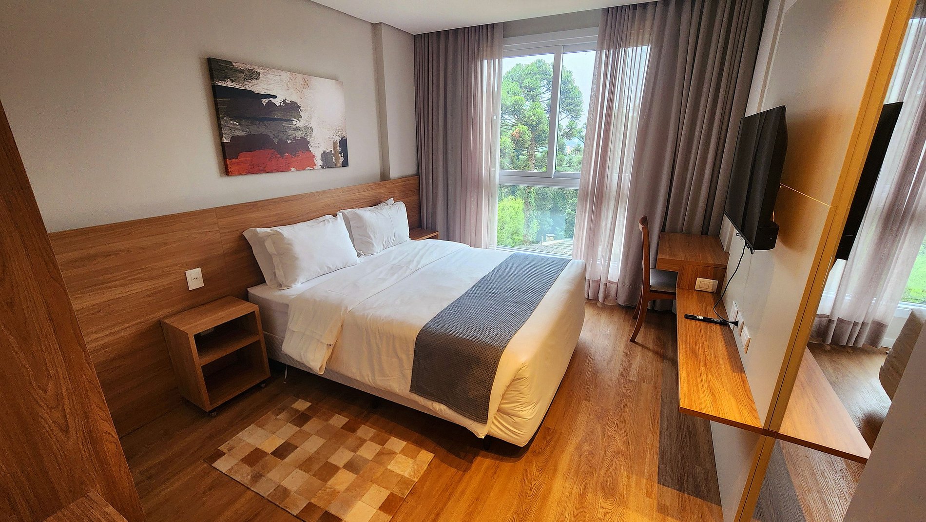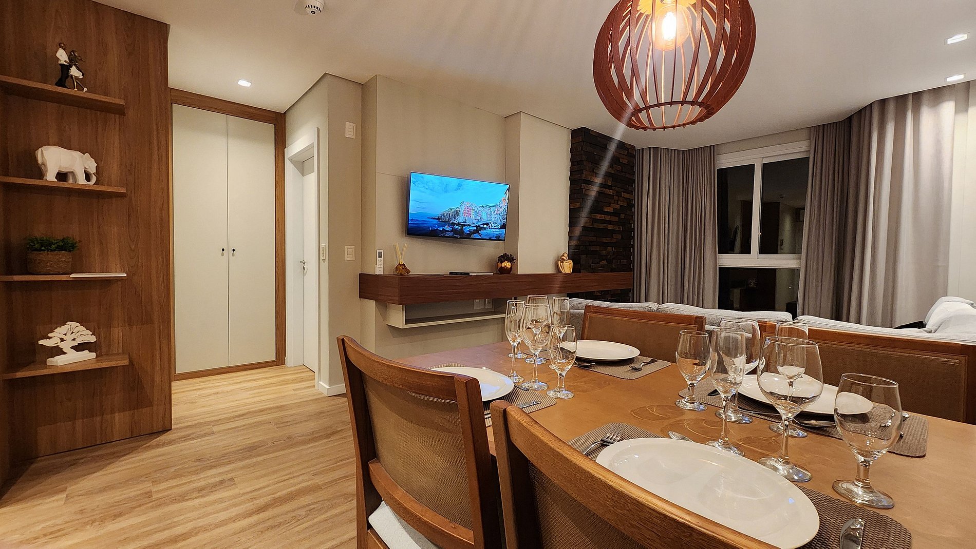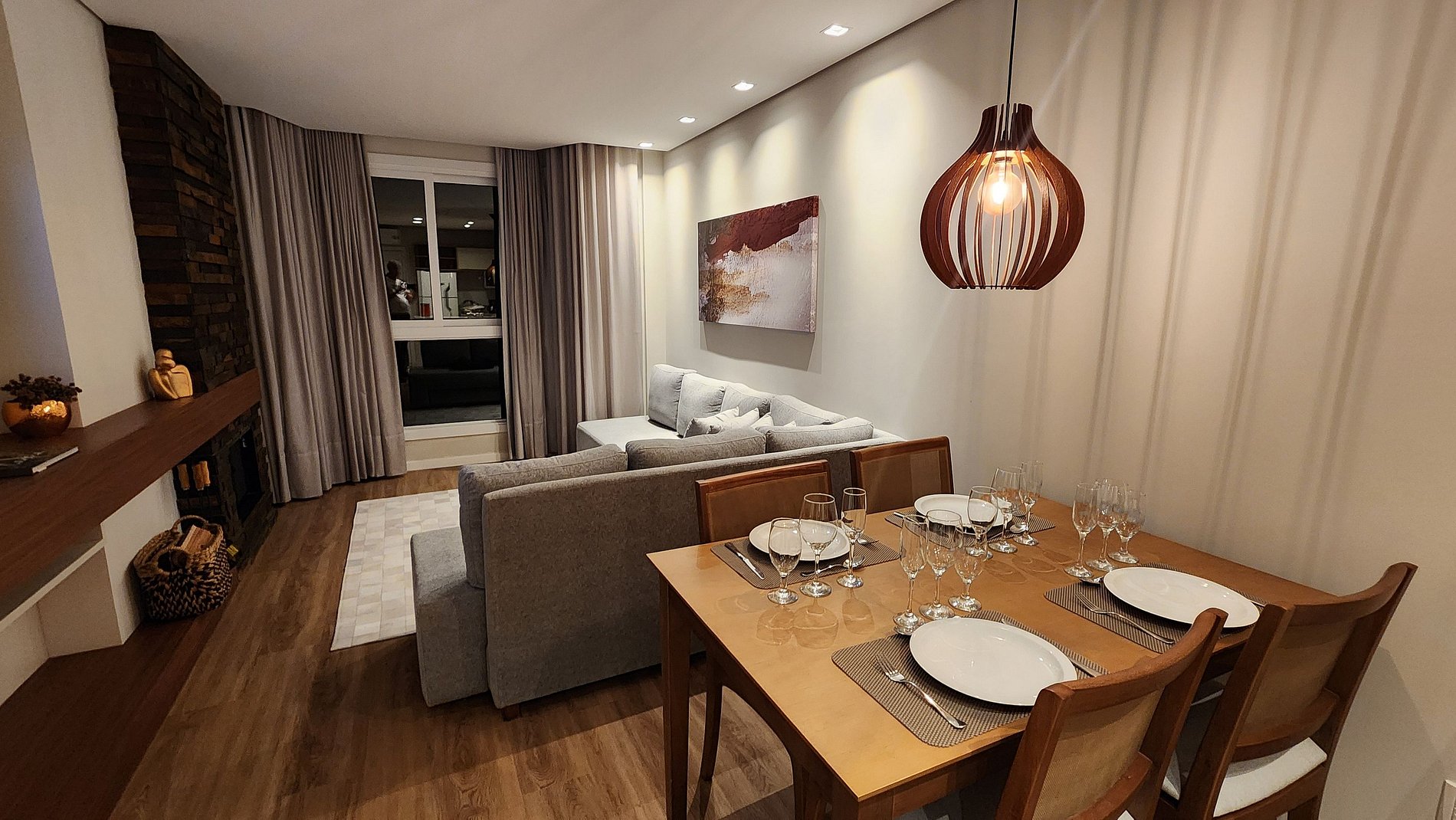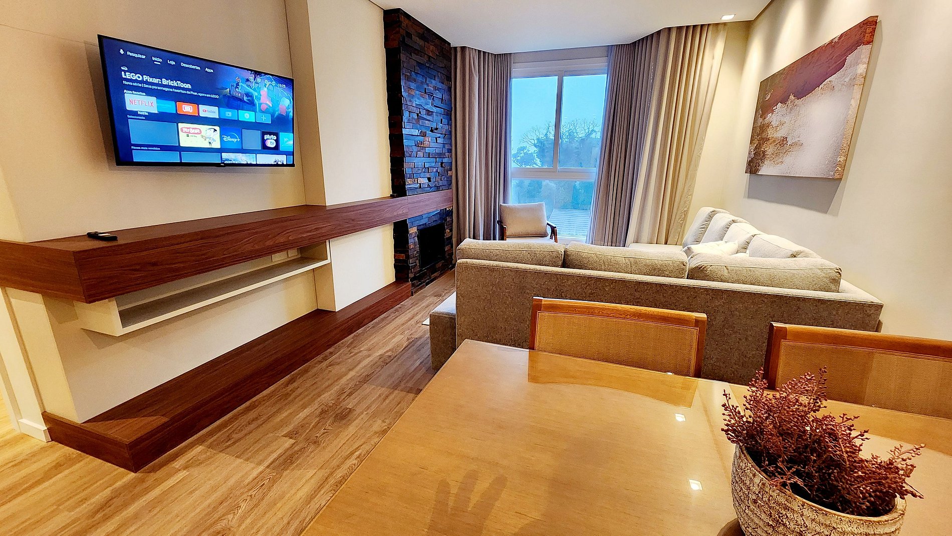 Divirta-se com toda a família neste lugar cheio de estilo. Espetacular Flat para até 5 pessoas, sala com 2 ambientes e lareira, cozinha equipada, todo mobiliado em alto padrão. Moderno, com todos os recursos disponíveis para uma estadia memorável. Possui a mais linda vista da cidade de Canela e Catedral de Pedra. Localizado em área nobre, rodeado de muito verde e linda vegetação