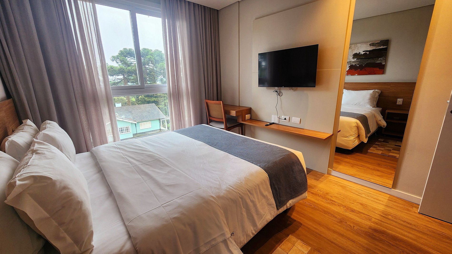 Flat a apenas 700 metros da Catedral de Pedra, com estacionamento exclusivo e grátis no próprio empreendimento