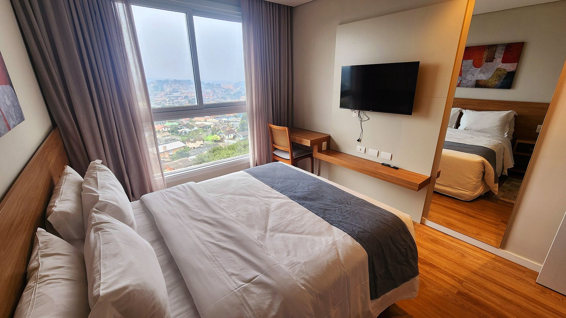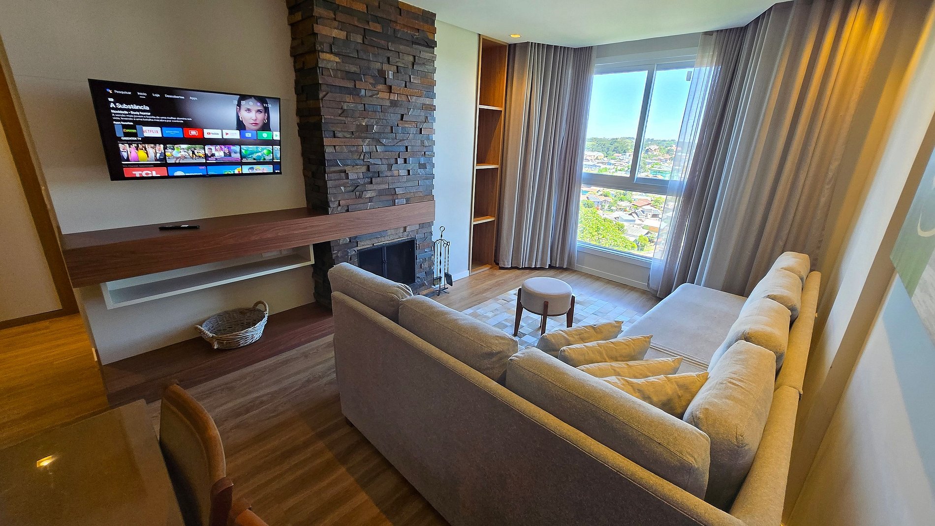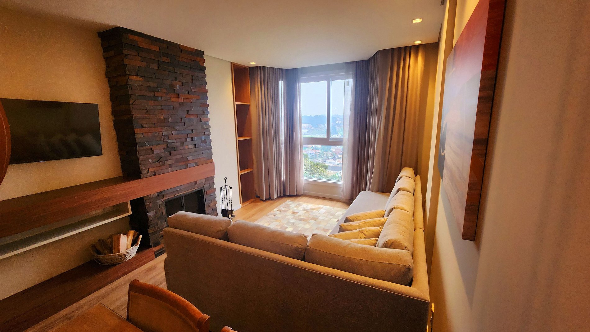 Divirta-se com toda a família neste lugar cheio de estilo. Espetacular Flat para até 5 pessoas, sala 2 ambientes, cozinha equipada e lareira, todo mobiliado em alto padrão. Moderno, com todos os recursos disponíveis para uma estadia memorável. Possui a mais linda vista da cidade de Canela e Catedral de Pedra. Possui no empreendimento piscina aquecida, sauna, academia, espaço kids, solarium e uma aconchegante sala com lareira. Localizado em área nobre, rodeado de muito verde e linda vegetação.