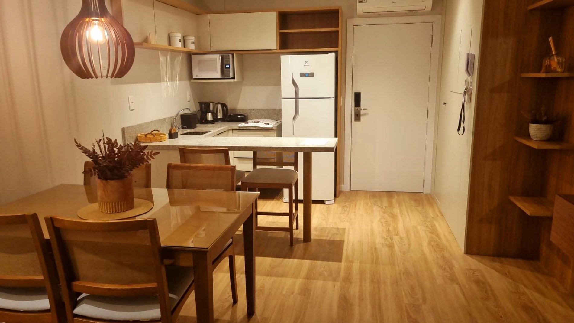 Espetacular Flat para até 5 pessoas em Canela, na Serra Gaúcha, para locacao/aluguel por temporada. C/ sala 2 ambientes, cozinha equipada e lareira, todo mobiliado em alto padrão. Moderno, c/ todos os recursos disponíveis para uma estadia memorável. Possui a mais linda vista da cidade de Canela e Catedral de Pedra. Tem no empreendimento piscina aquecida, sauna, academia, espaço kids, solarium e uma aconchegante sala com lareira. Localizado em área nobre, rodeado de muito verde e linda vegetação.