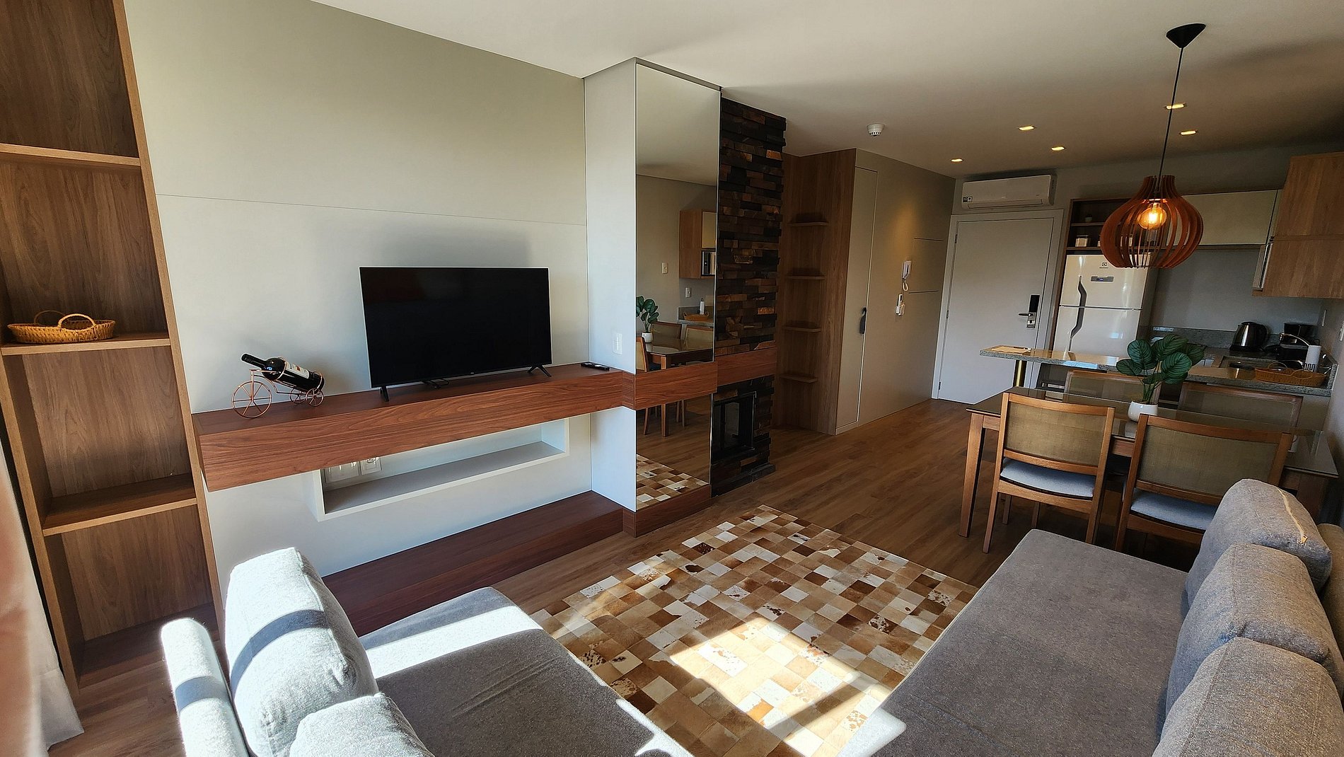 Espetacular Flat para até 5 pessoas, sala com 2 ambientes, lareira, banheira com hidromassagem, cozinha equipada, todo mobiliado em alto padrão. Moderno, com todos os recursos disponíveis para uma estadia memorável. Possui a mais linda vista da cidade de Canela e Catedral de Pedra. Possui no empreendimento piscina aquecida, sauna, academia, espaço kids, solarium e uma aconchegante sala com lareira. Localizado em área nobre, rodeado de muito verde e linda vegetação